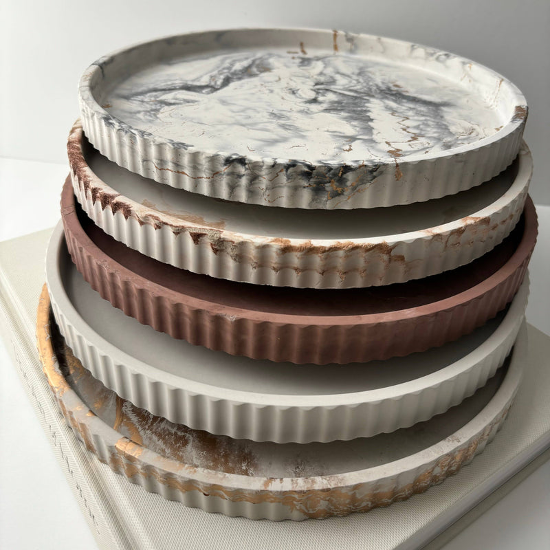 Joma - Concrete Fluted Tray | Round Concrete Tray