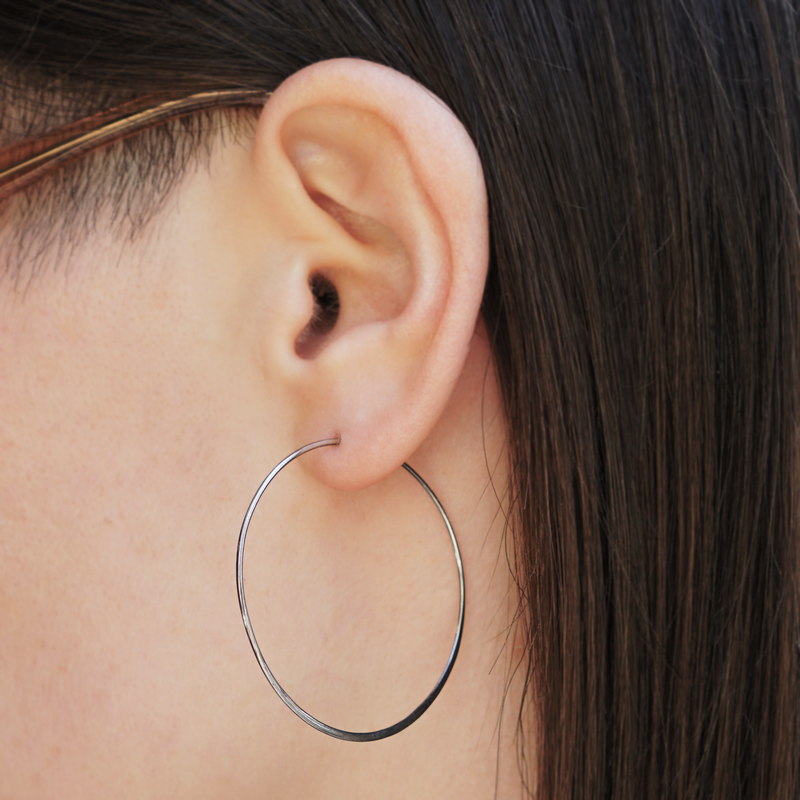 Sterling Silver Half Hammered Circle Hoop Earrings