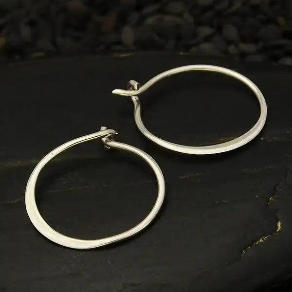 These sterling silver circle hoop earrings are destined to become your go-to accessory for evenings out. Featuring a minimalist, lightweight design, they showcase a half-hammered, flattened edge that adds a contemporary touch and catches the light beautifully with every movement. Elegant enough to stand on their own or to be personalized with wire-wrapped beads for added texture and color. Crafted by hand for a refined finish. Made from recycled sterling silver